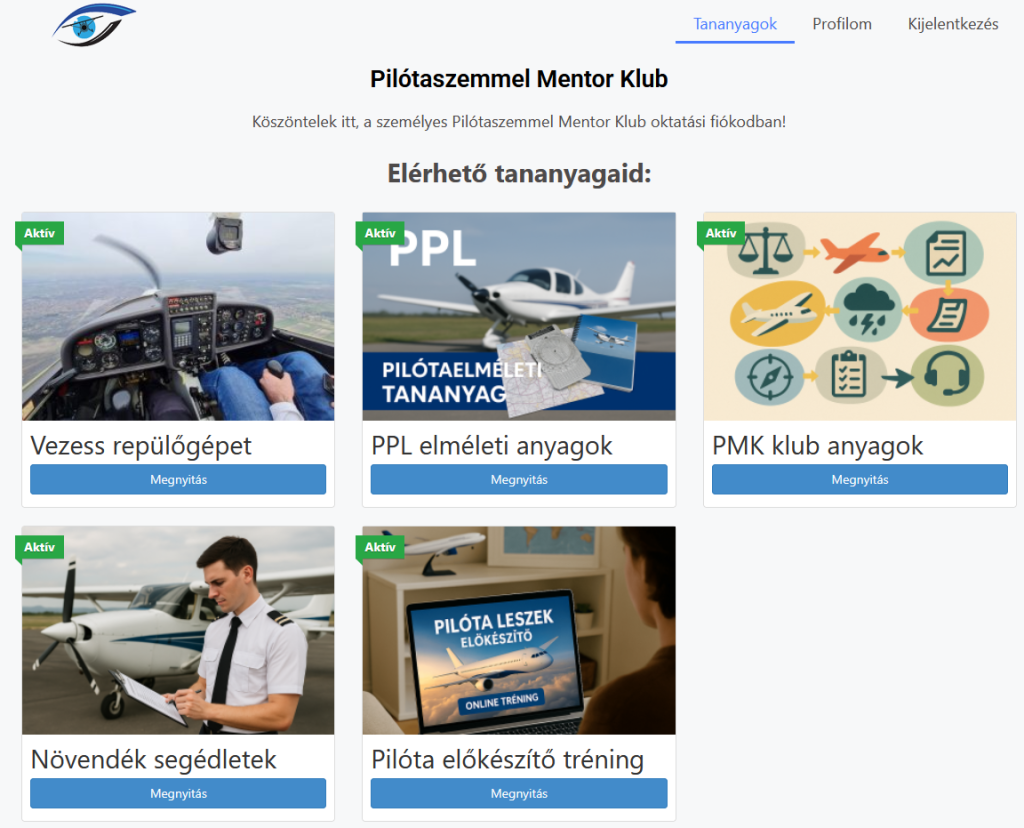 • folyamatosan bővülő online repülős tananyagokat kapsz